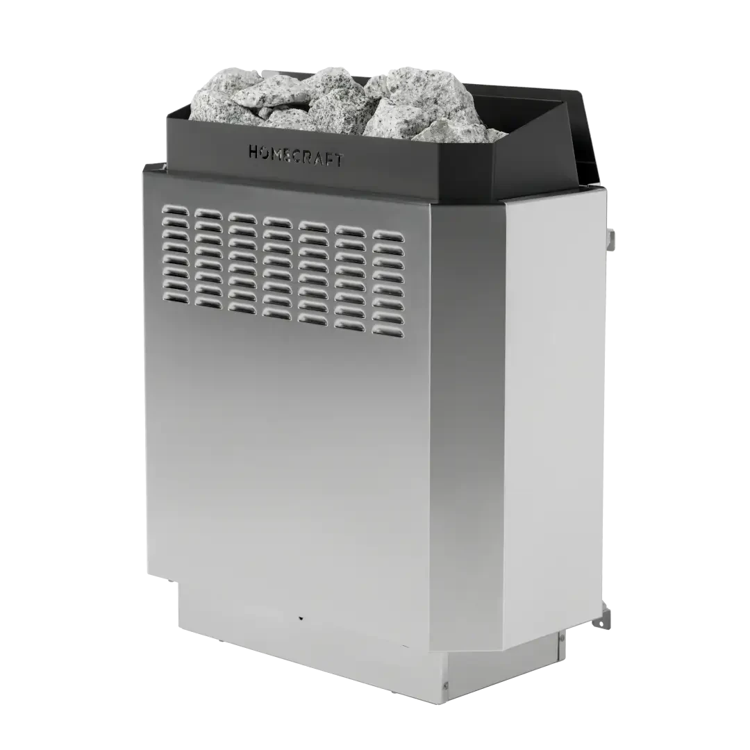 Proudly made in Canada, the HOMECRAFT H-Series Electric Sauna Heater combines traditional sauna performance with a modern, stainless steel upgrade. Designed to celebrate over 35 years of Homecraft sauna innovation, this Anniversary Edition brings a sleek, all-stainless steel finish to the classic H-Series line—offering enhanced durability, corrosion resistance, and a clean, elevated look for your home or barrel sauna.