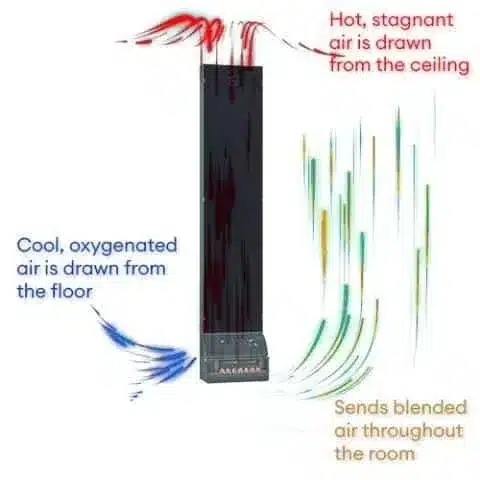 • Consistent Heat Distribution: The AirSolo 70 uses a patented air blending system to mix the hot air from the ceiling with cooler, oxygenated air from the floor, ensuring an even temperature and oxygen level throughout the sauna.