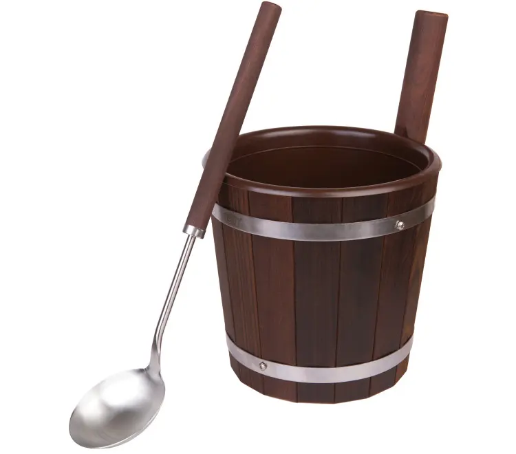 The set consists of indispensable accessories for any bath and sauna: buckets 5 l. (intended for storing water) and a ladle 100 ml. (for supplying water on a stone).