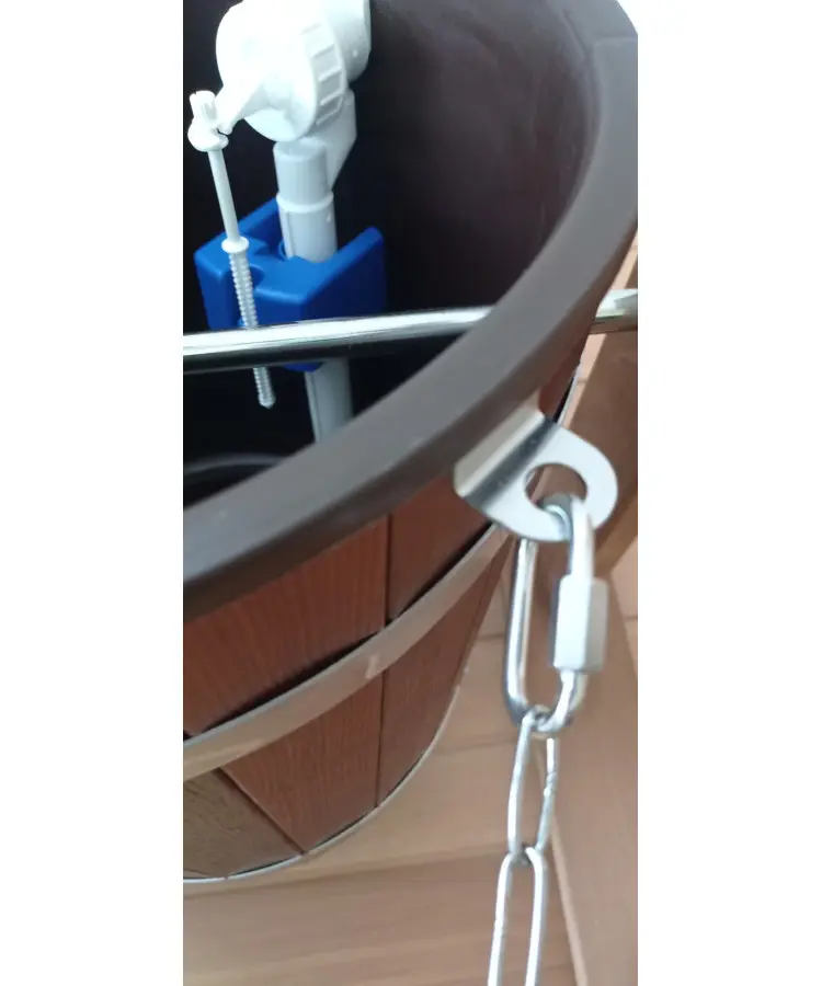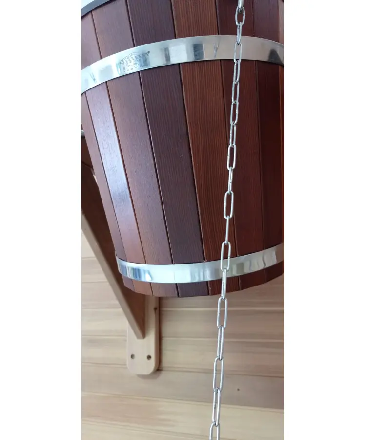A sauna bucket is primarily used for holding water that is poured over hot sauna stones to create steam and control humidity levels in the sauna. In contrast, a sauna shower pail—also known as a sauna pail shower or overhead sauna bucket—is designed for a refreshing rinse. It’s typically mounted overhead and filled with cold water, allowing users to pull a chain or lever for an invigorating waterfall-like splash after a hot sauna session.